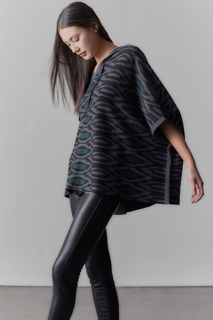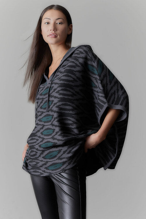 Shirin-Mandalay Sweater Knit Hooded Poncho - multi