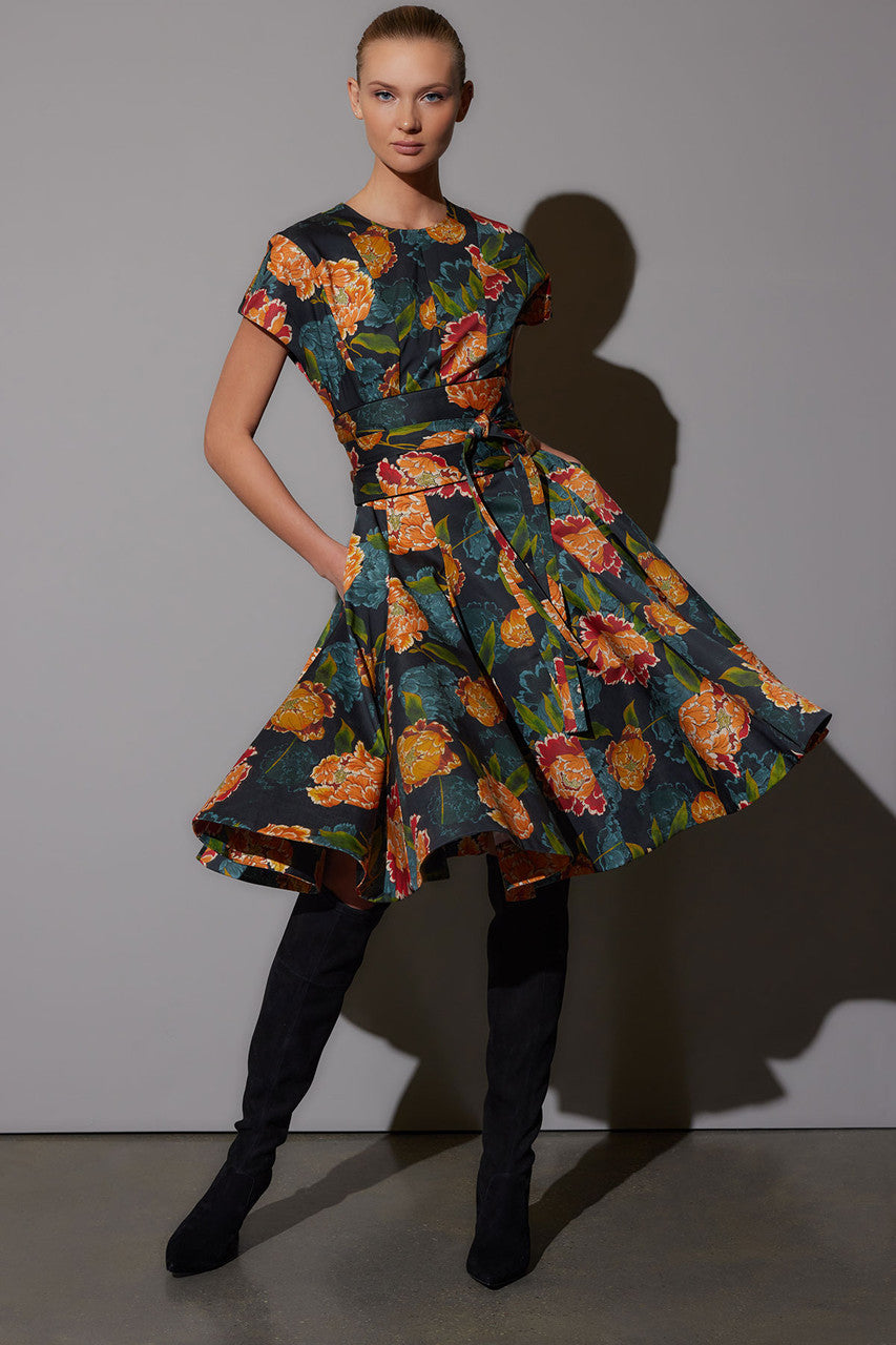 • A dress that accentuates the waist and flares off below the hips, beautiful pleat details for an elevated look