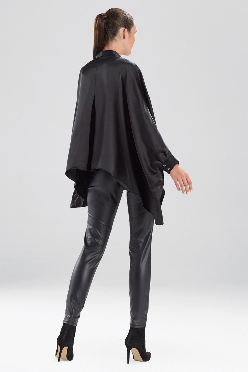 Solid Charmeuse Tie Neck Embroidered Caftan Top - Black