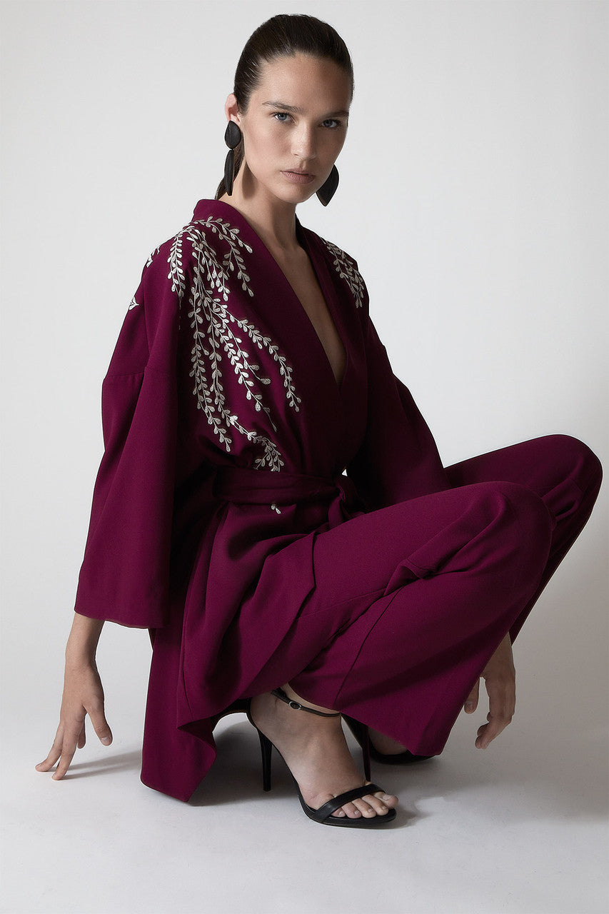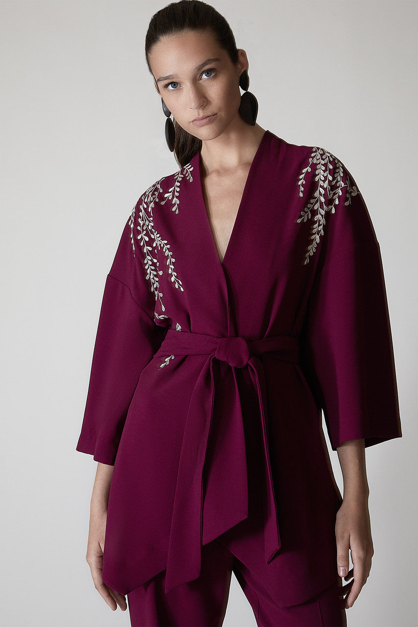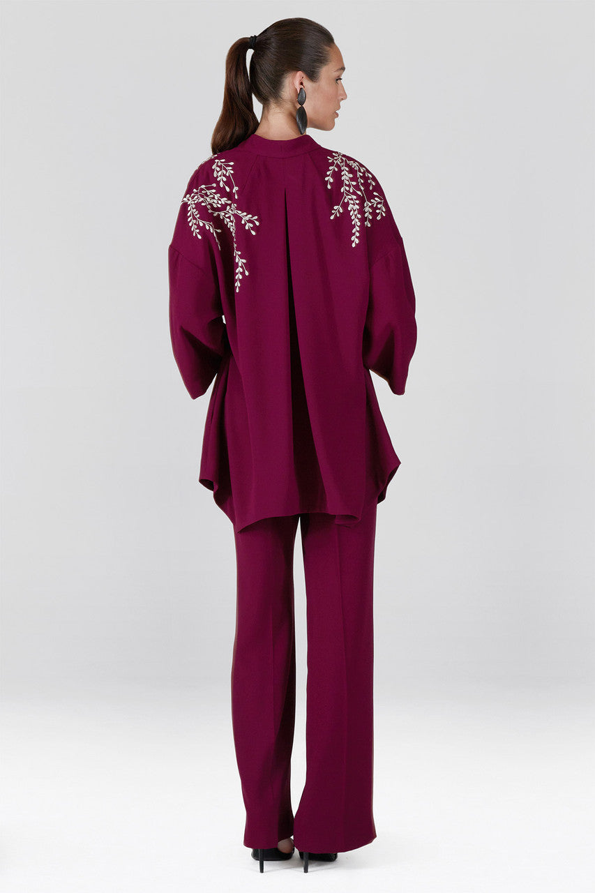 Solid Crepe Embroidered Handkerchief Topper - boysenberry
