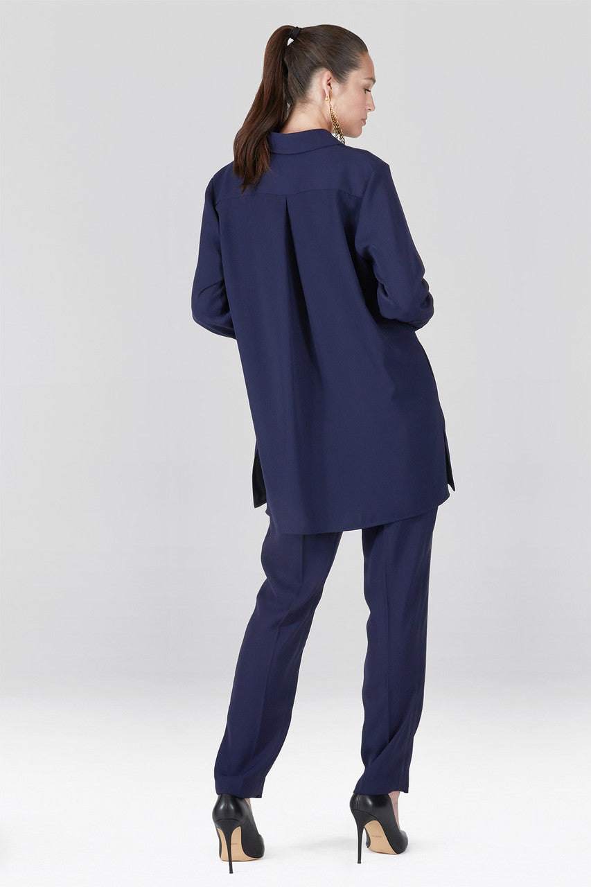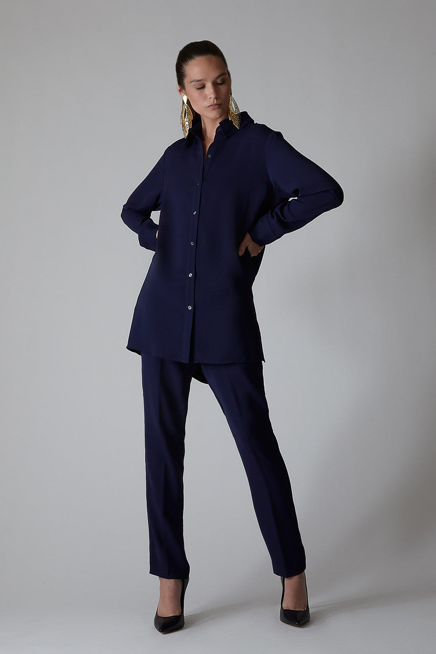 Solid Fluid Crepe Shirt Tunic - shibori blue