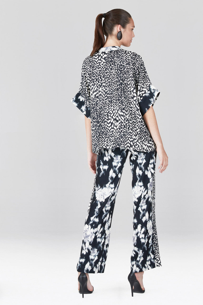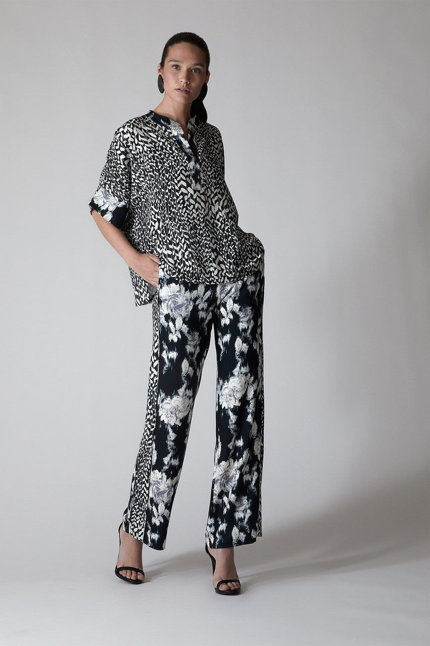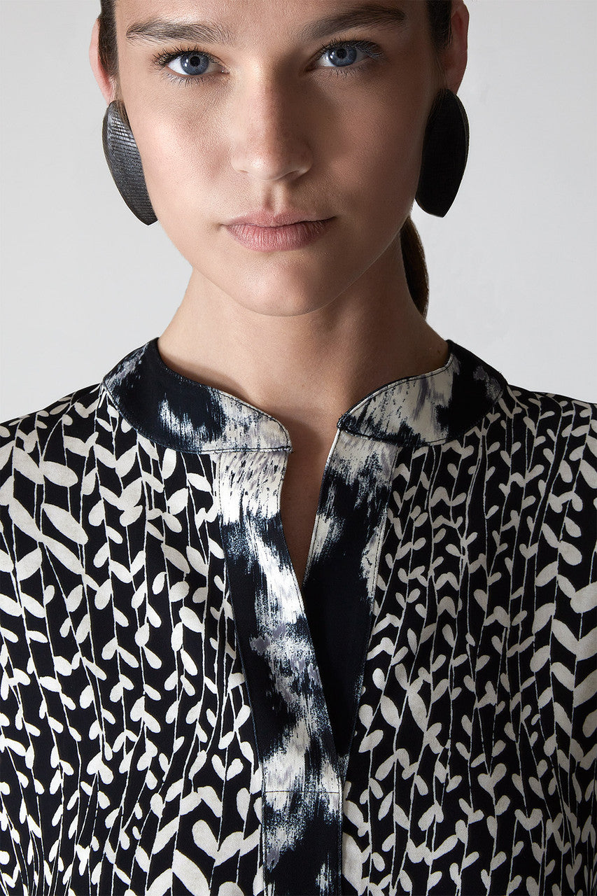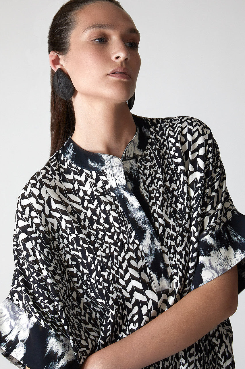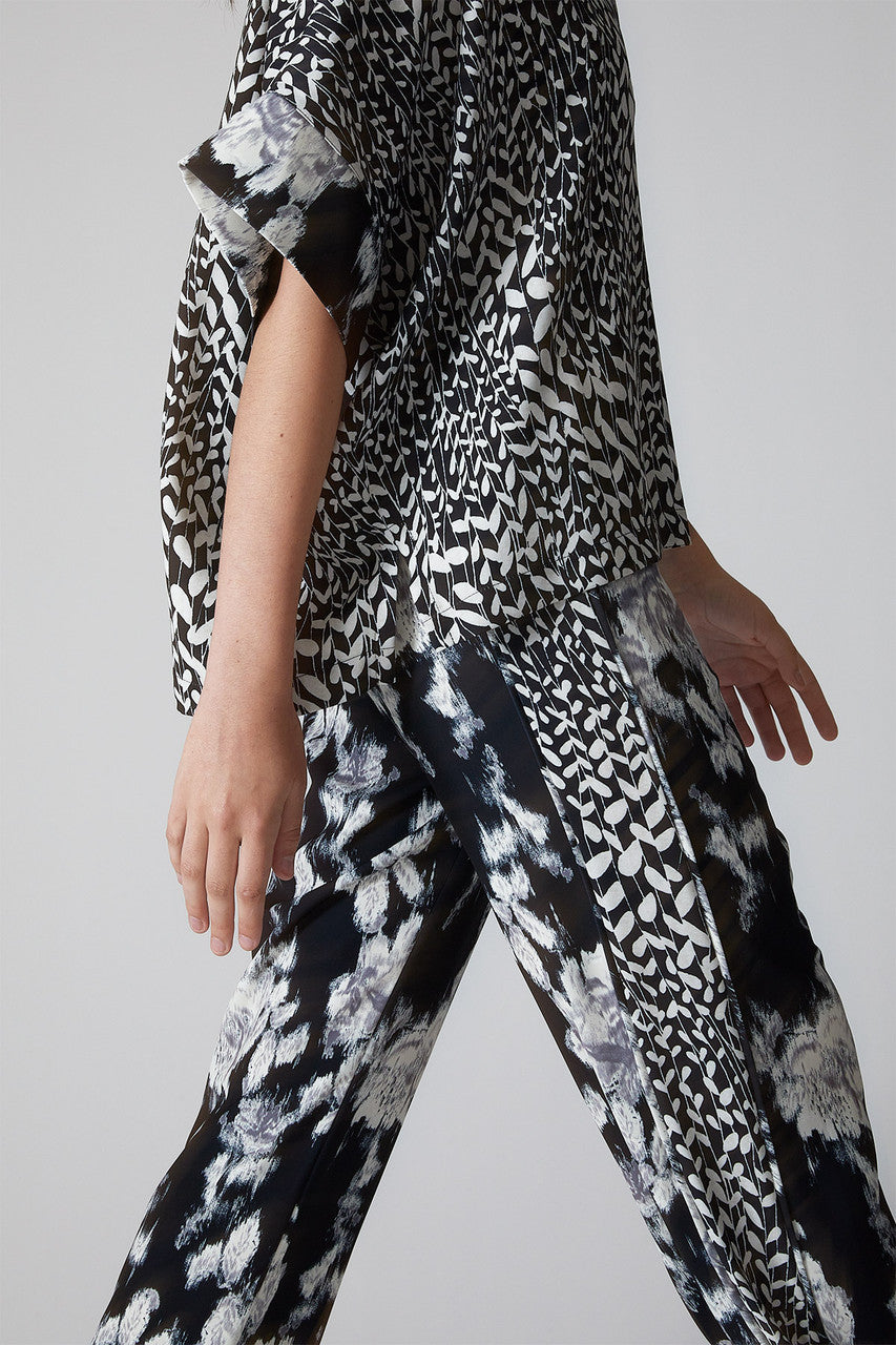 Stencil Vine Fluid Crepe T-Shirt Top - black with white