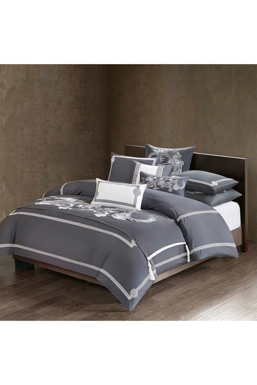 Iconic for the 40th anniversary, the Sterling Dragon bed features intricate embroidery, clean lines and crisp cotton sateen.