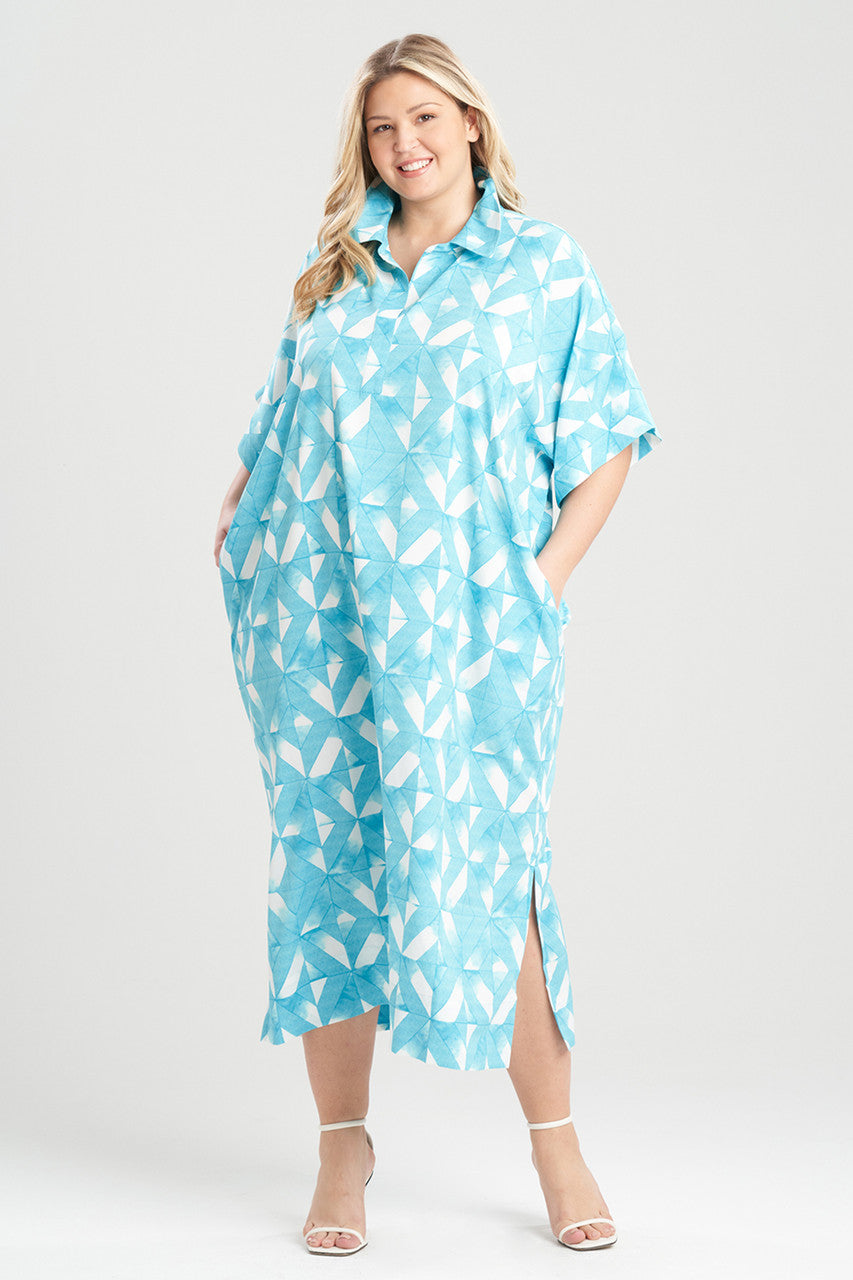 Brushstroke geos printed on lightweight Crepe de Chine fabric. Versatile for every day wear, beachwear or sleepwear.