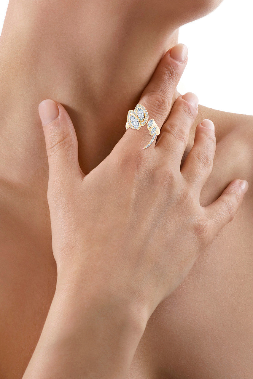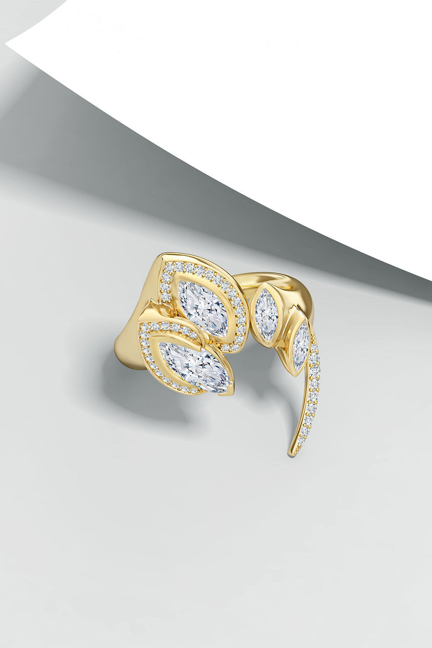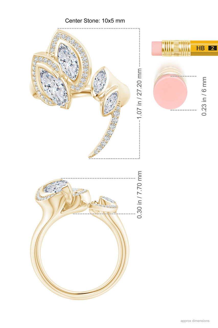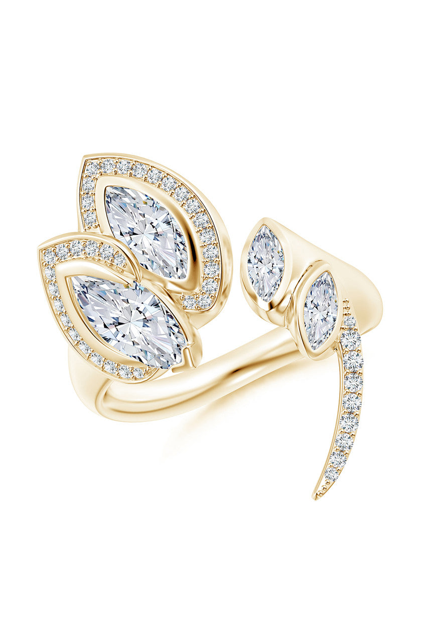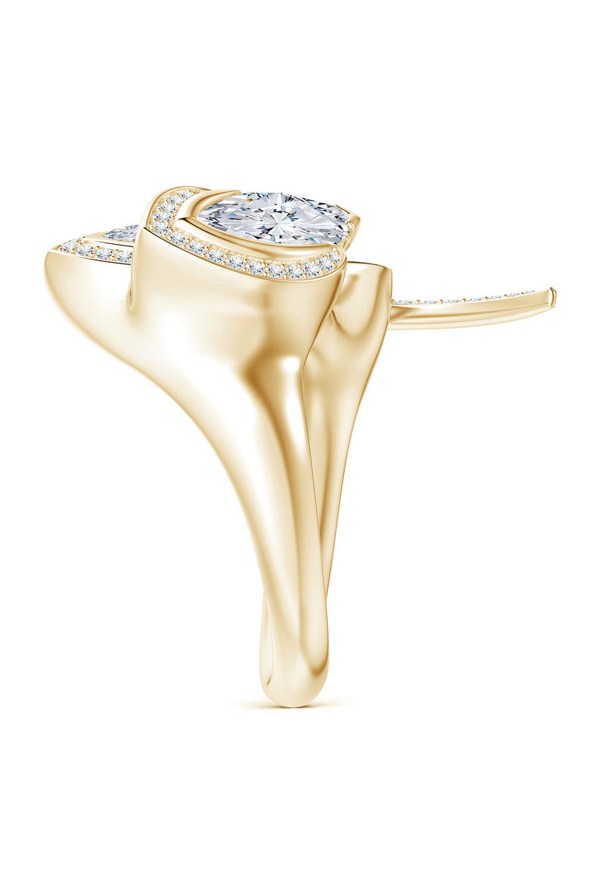 Sumi Stroke 14k Marquise & Pave Diamond Statement Ring - 14k yellow gold