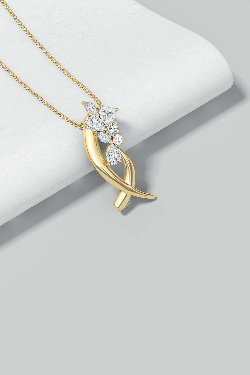 Sumi Stroke Cascading Diamond Slider Pendant Necklace - 14k yellow gold