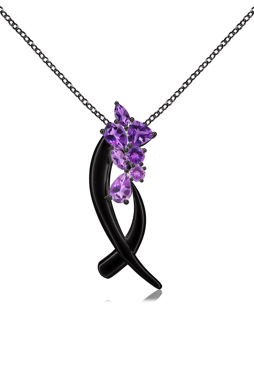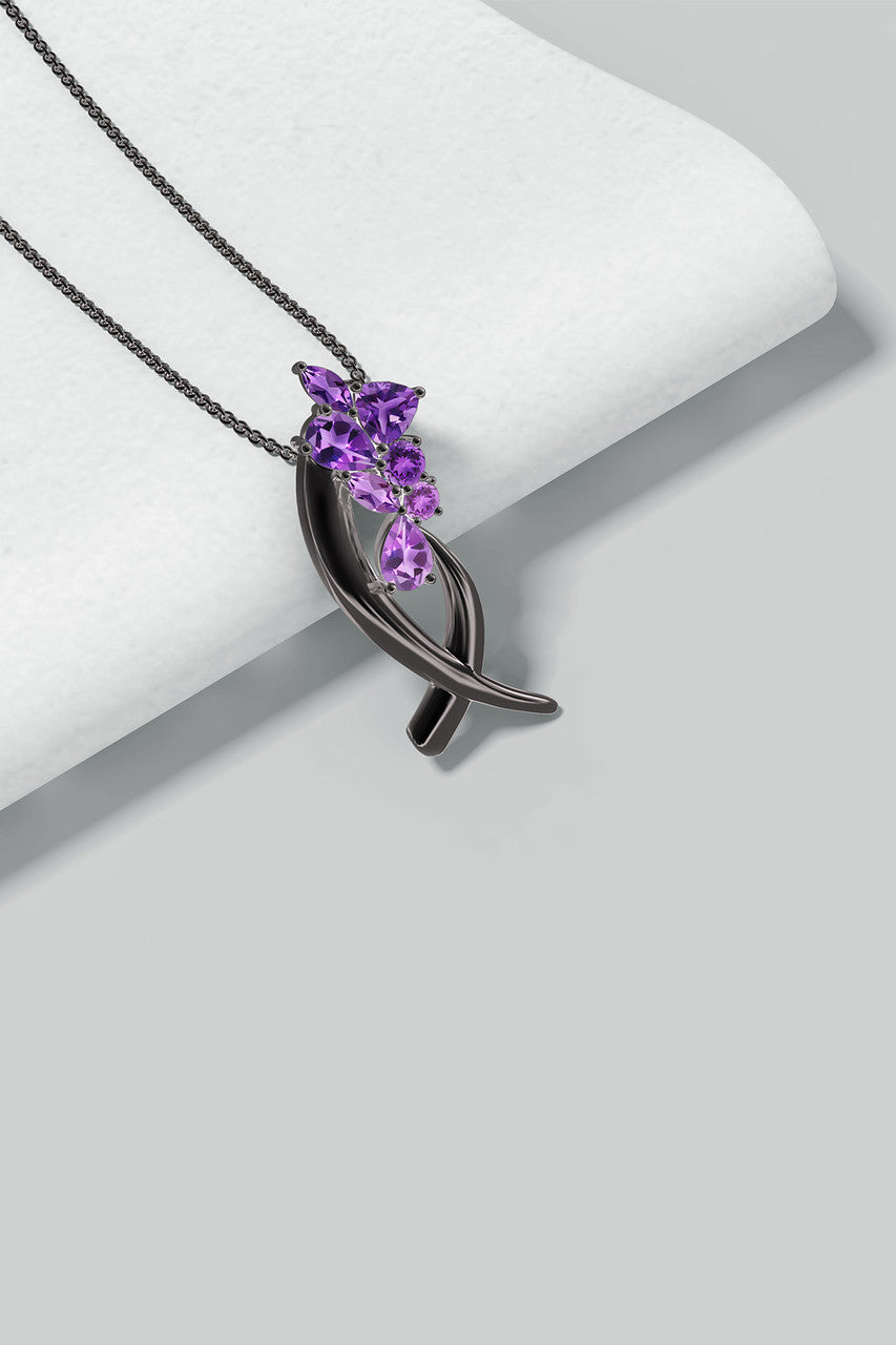 Sumi Stroke Midnight Silver Cascading Amethyst Ombre Slider Pendant Necklace - midnight silver