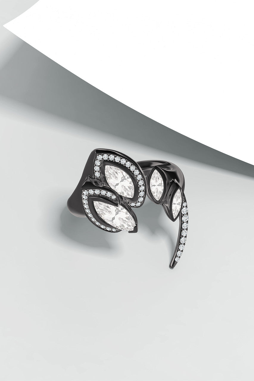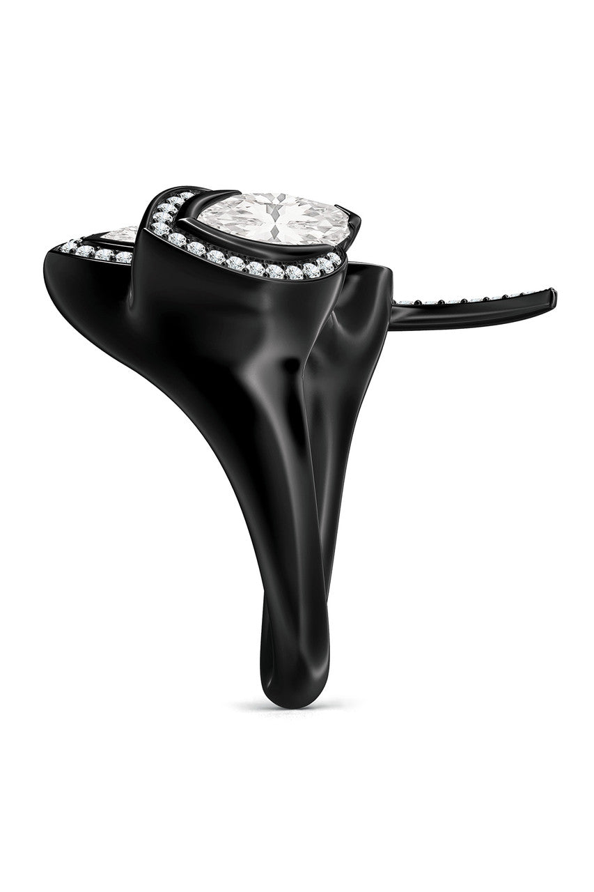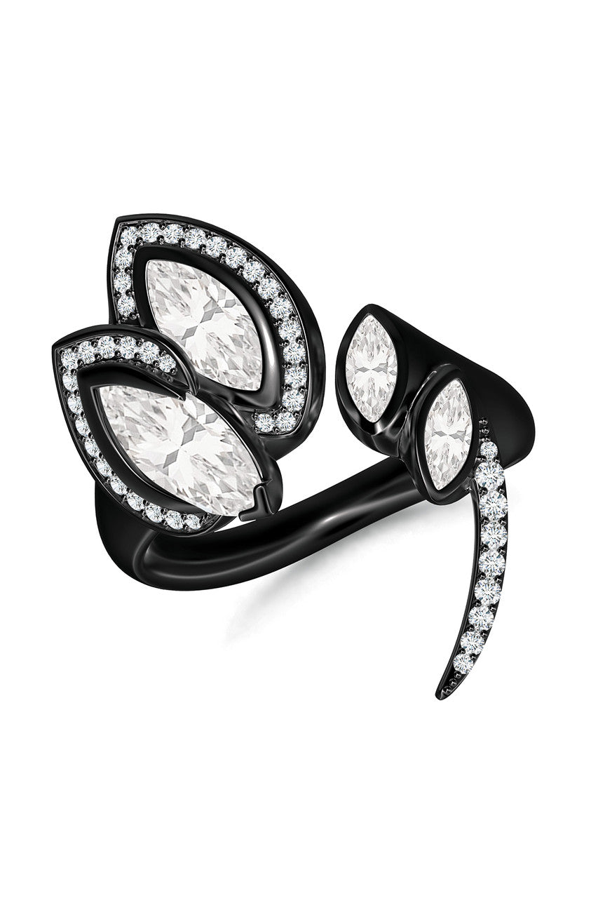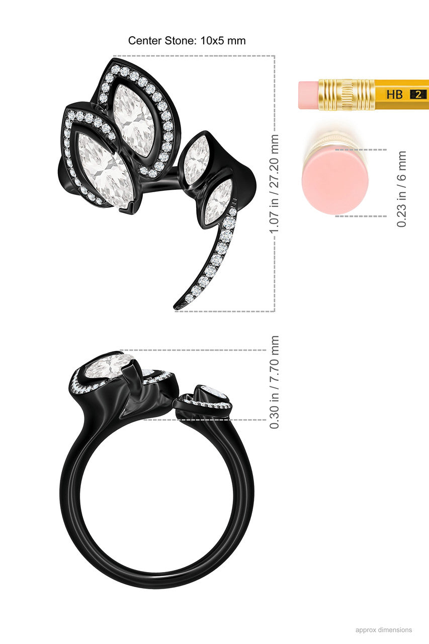 Sumi Stroke Midnight Silver Marquise Amethyst White Topaz & Pave Diamond Statement Ring - midnight silver
