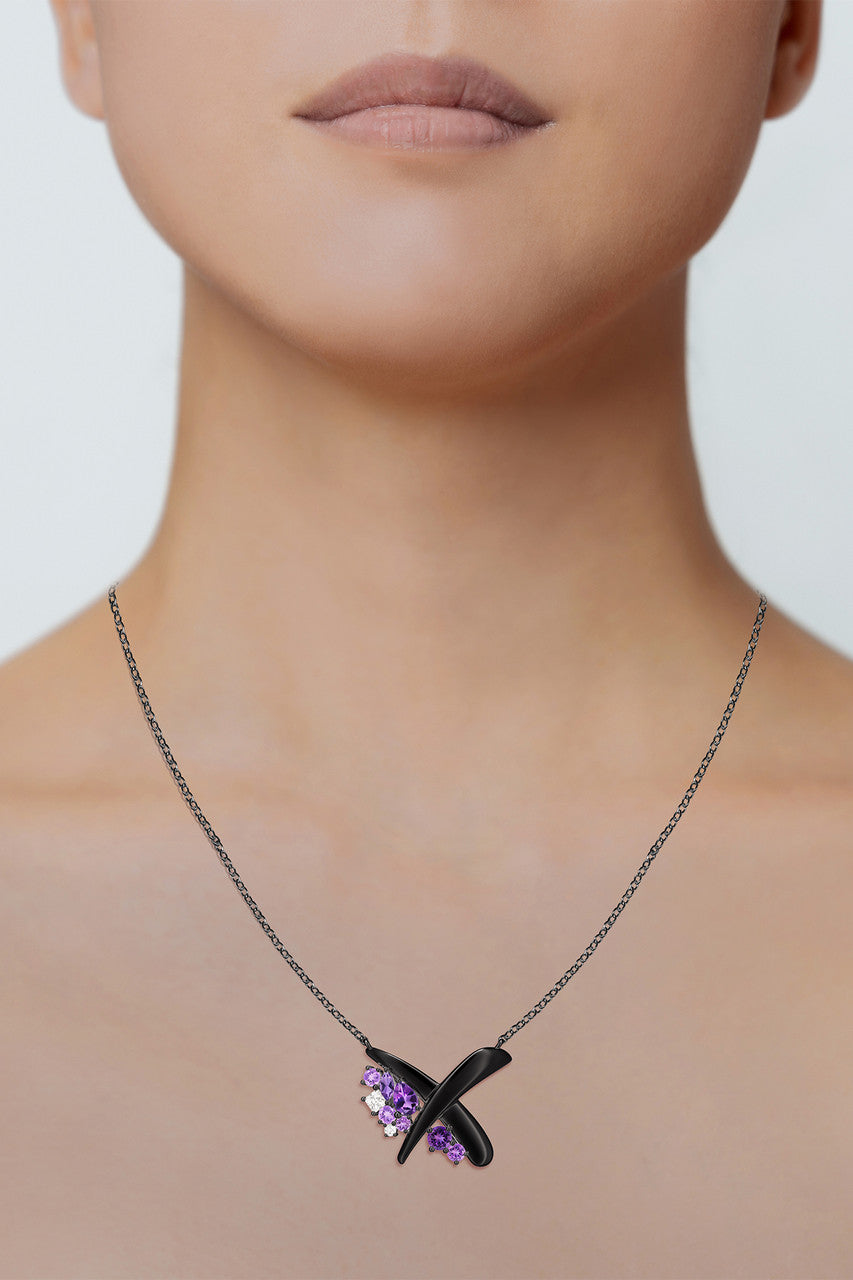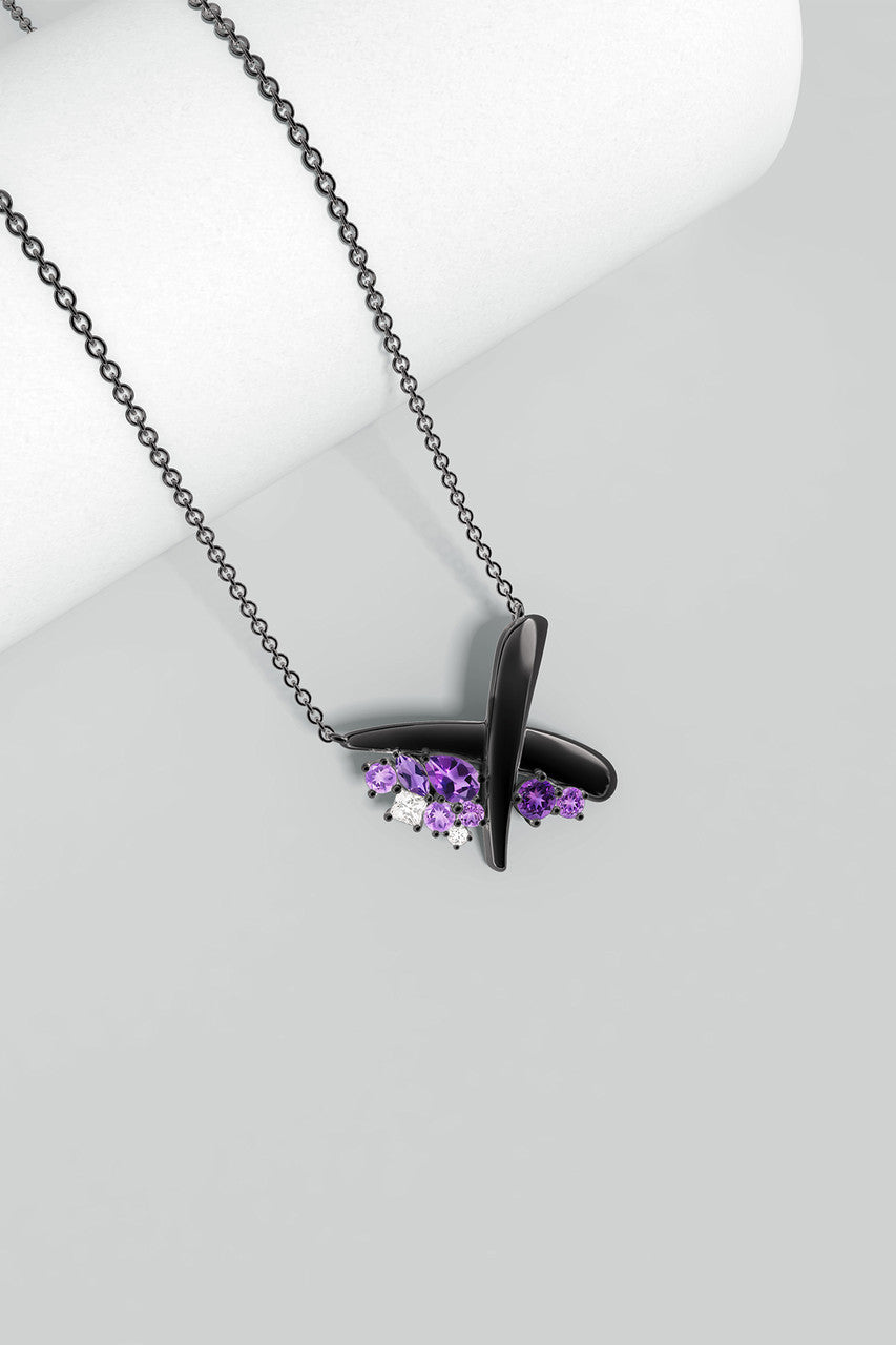 Sumi Stroke Midnight Silver Waterfall Amethyst Ombre Pendant Necklace - midnight silver