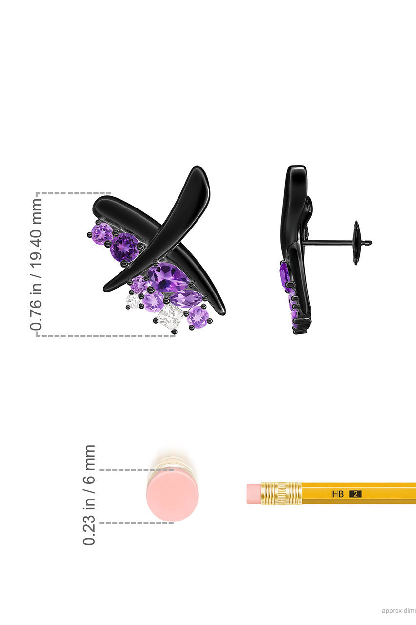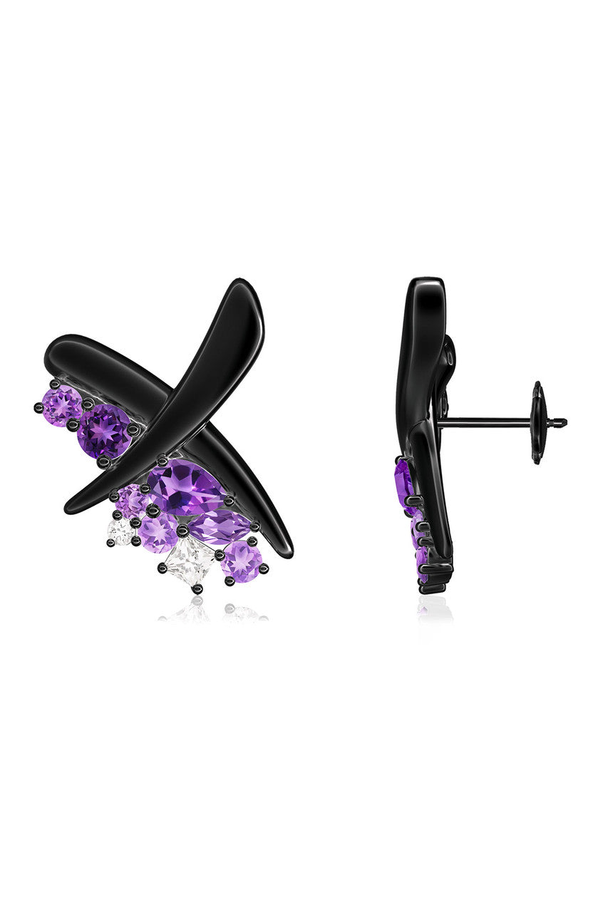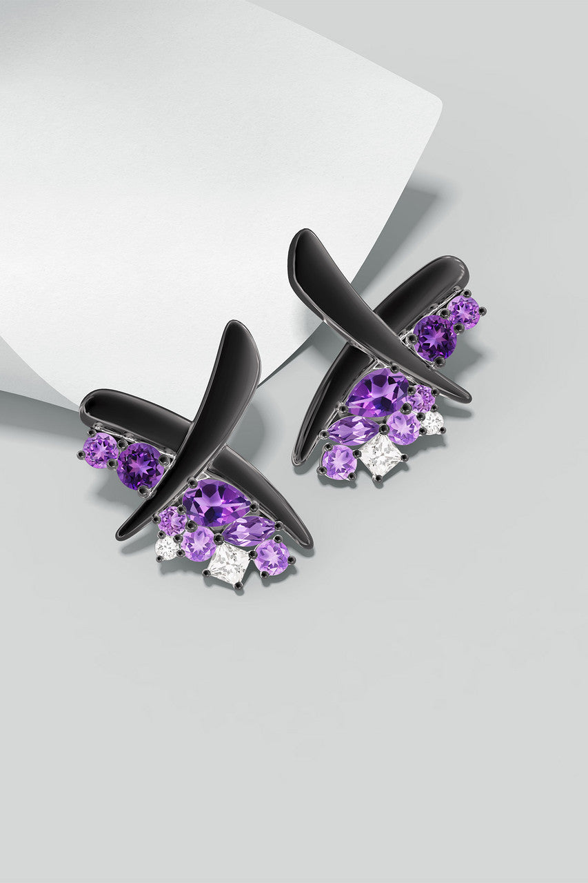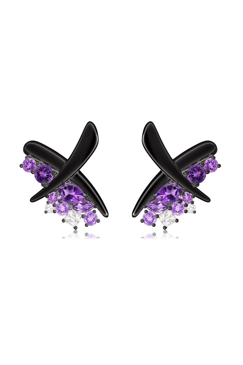 Sumi Stroke Midnight Silver Waterfall Amethyst Ombre Stud Earrings - midnight silver