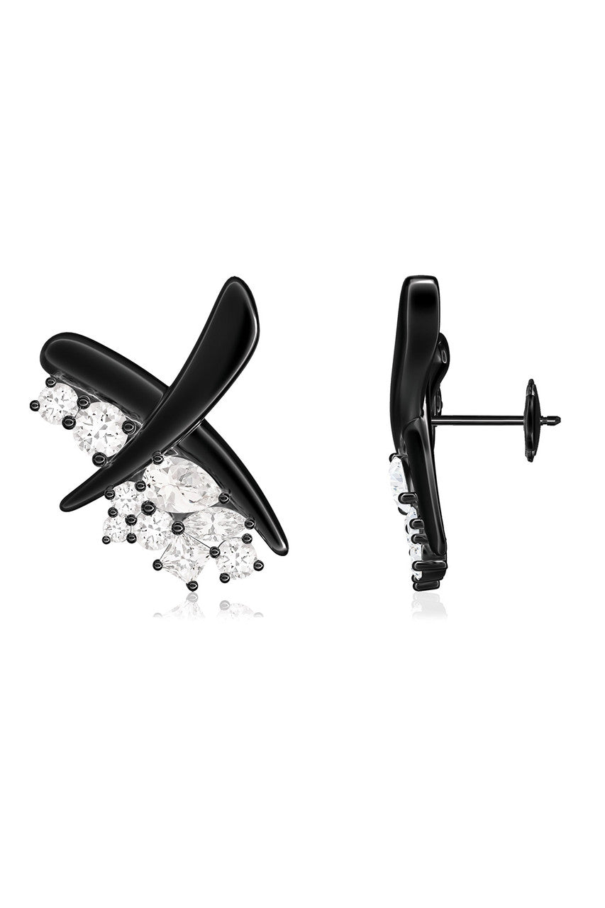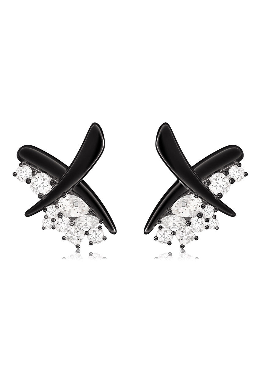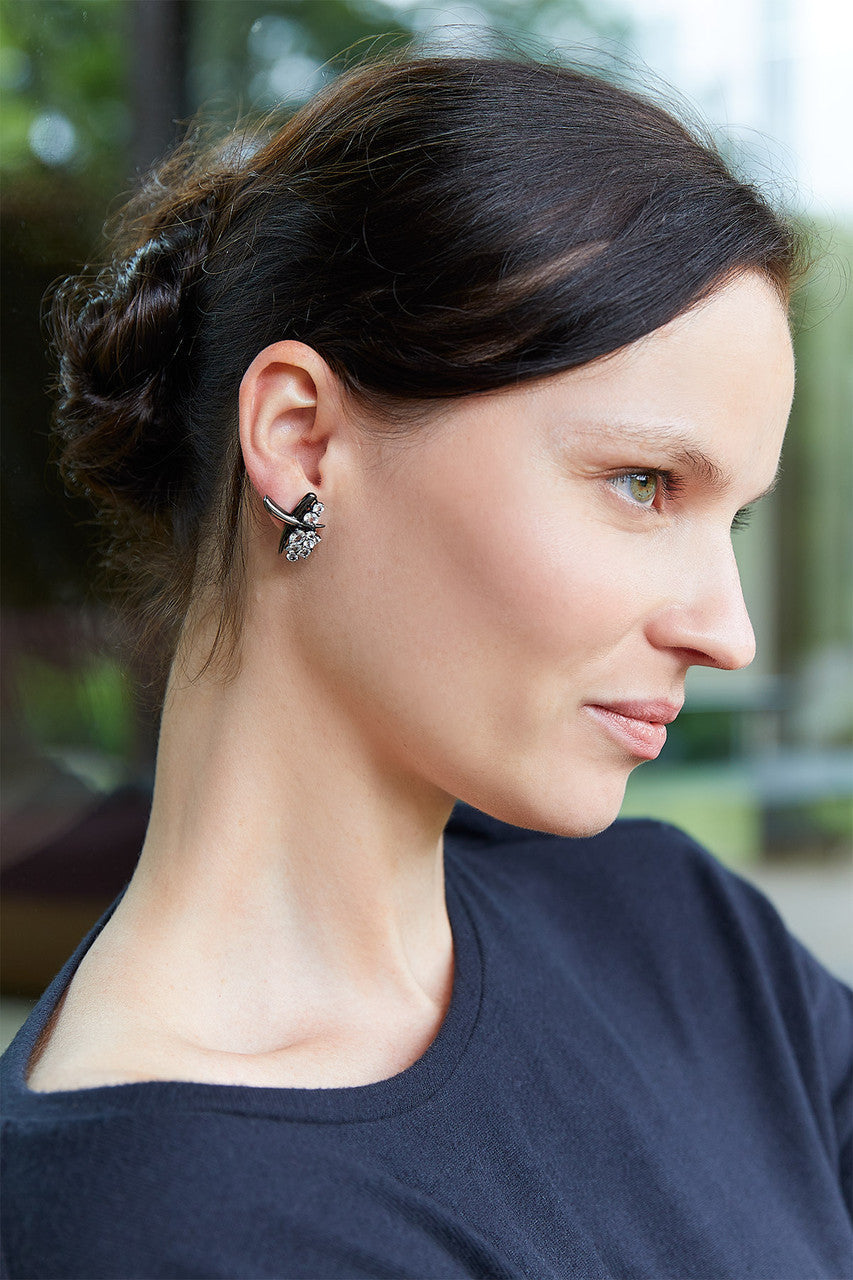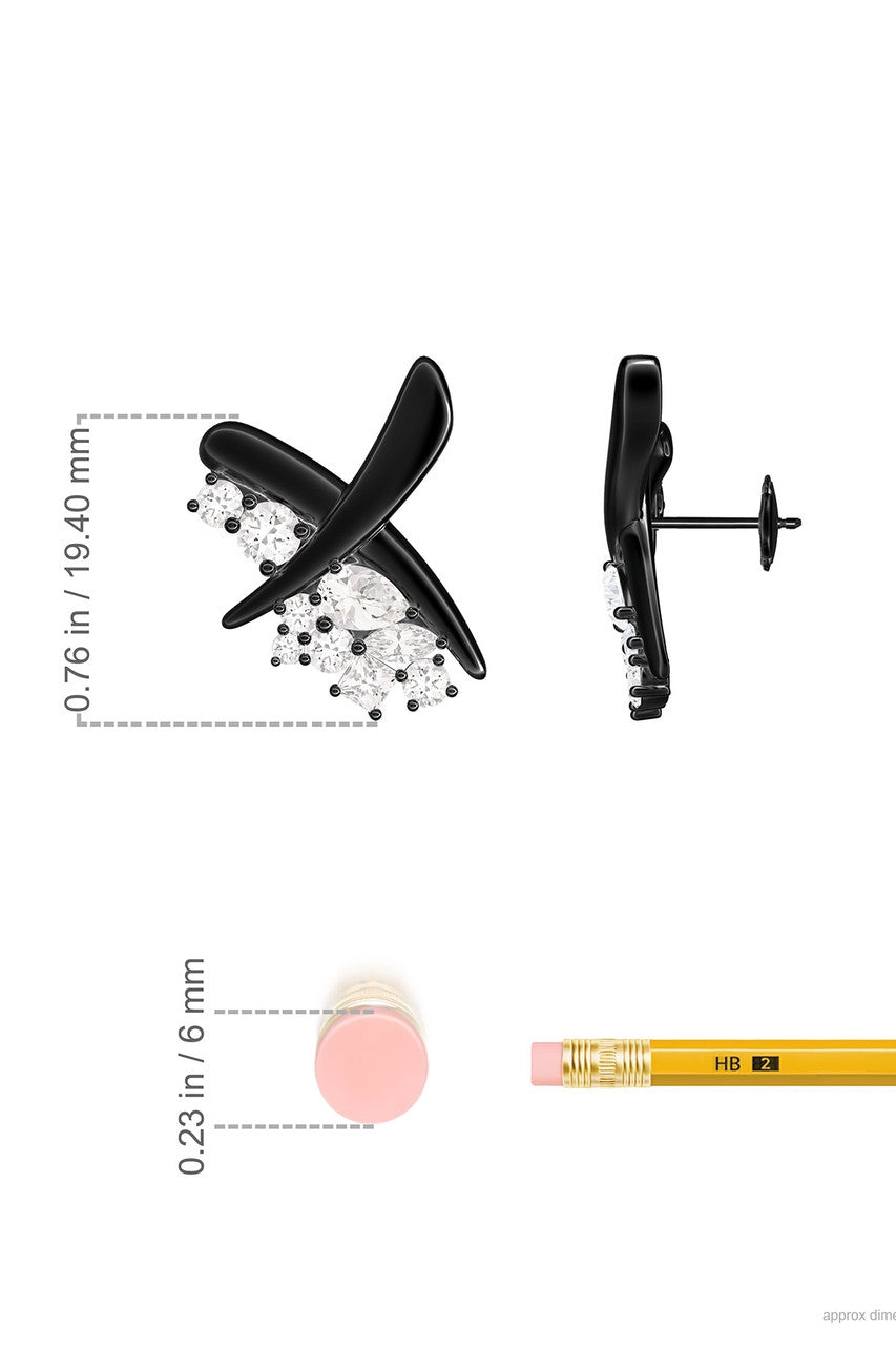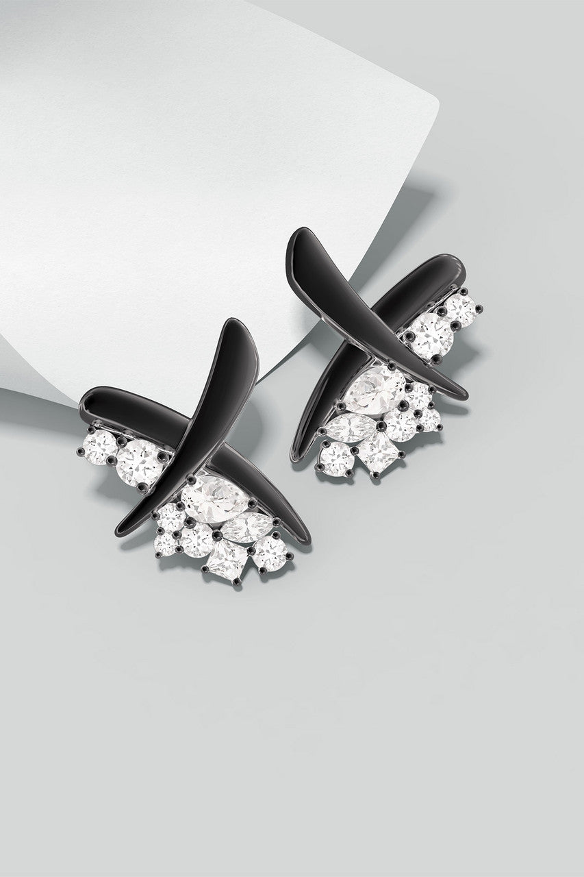 Sumi Stroke Midnight Silver Waterfall White Topaz Stud Earrings - midnight silver
