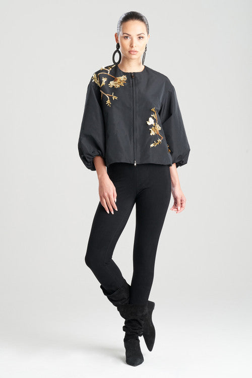 - Incredible embroidered bomber jacket with balloon sleeves in our crisp taffeta