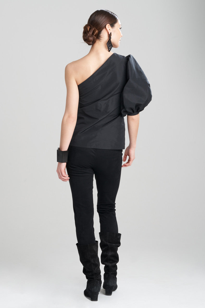 Taffeta One Shoulder Balloon Sleeve Top - Black