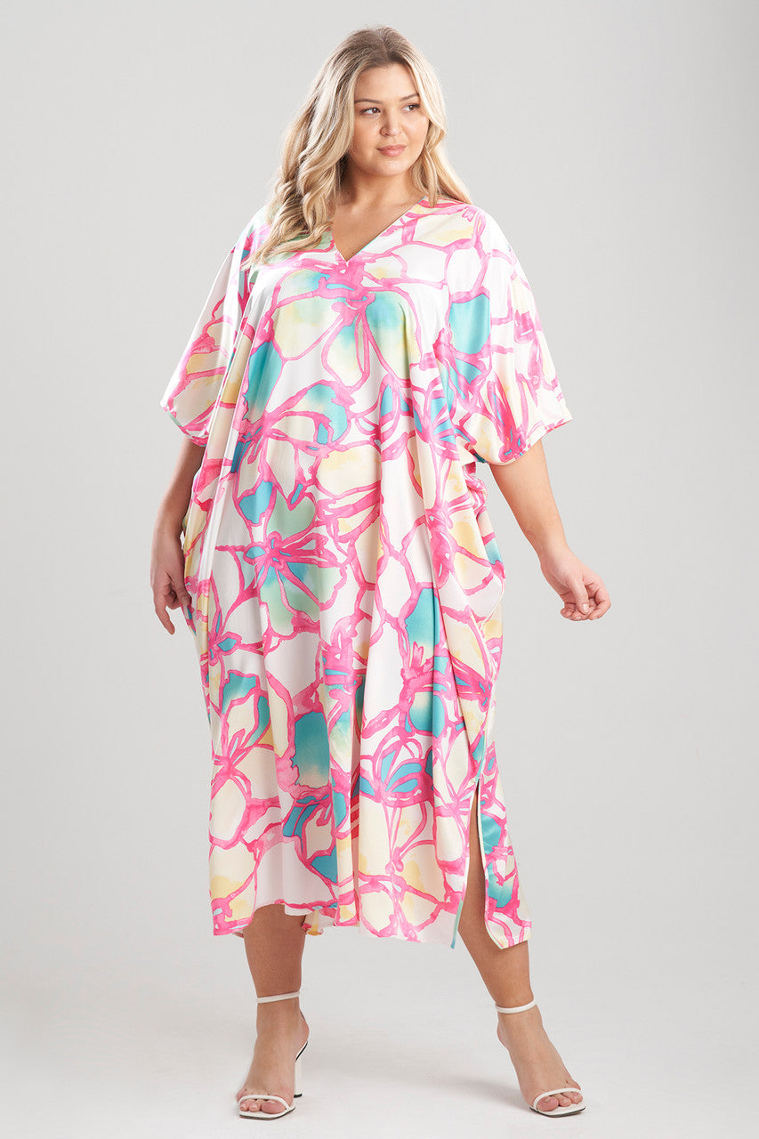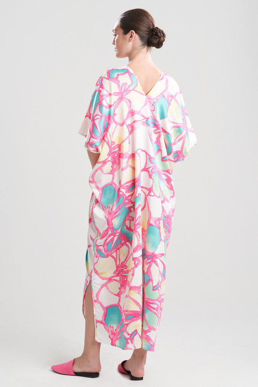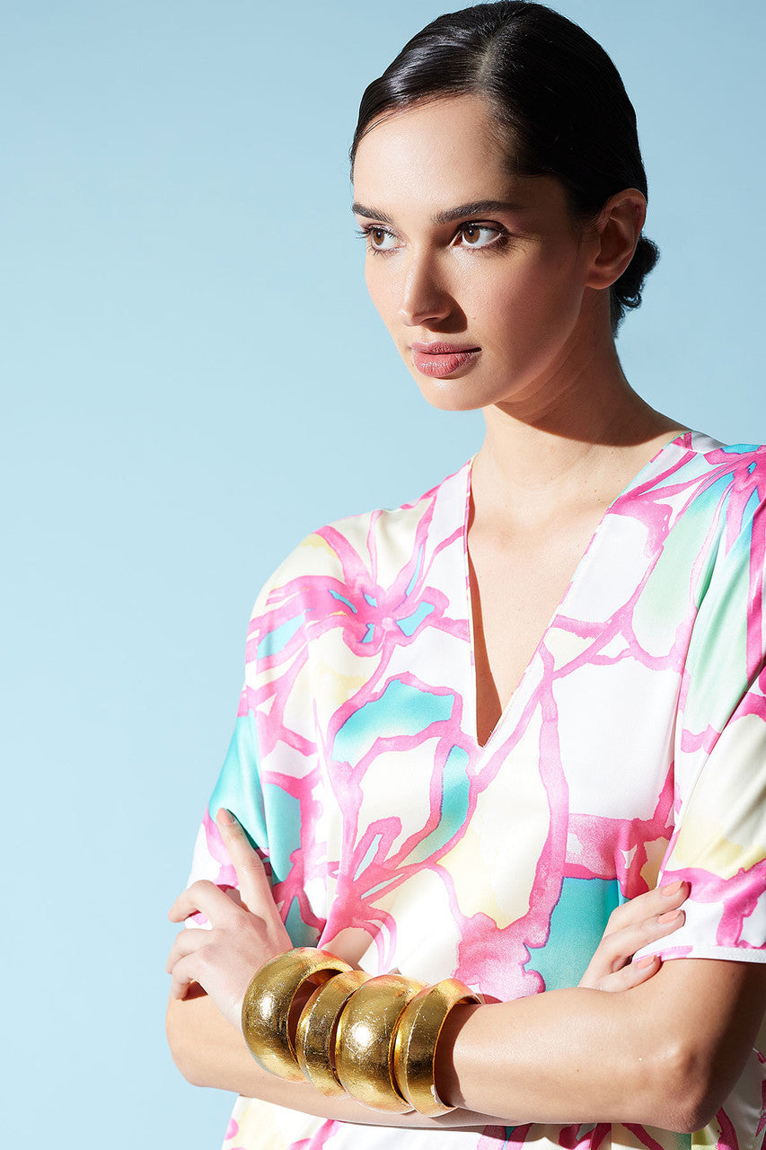 Soft, watercolor lilies stenciled on printed silky charmeuse.