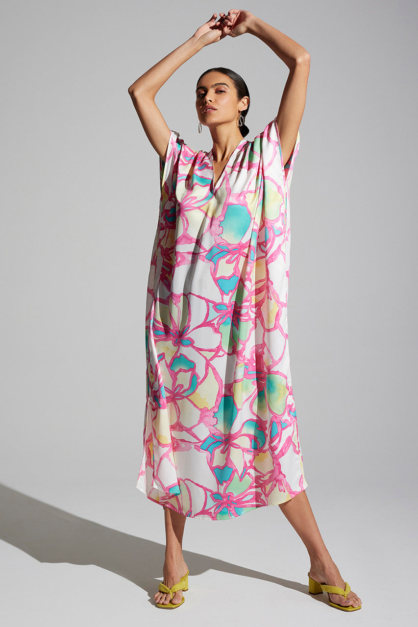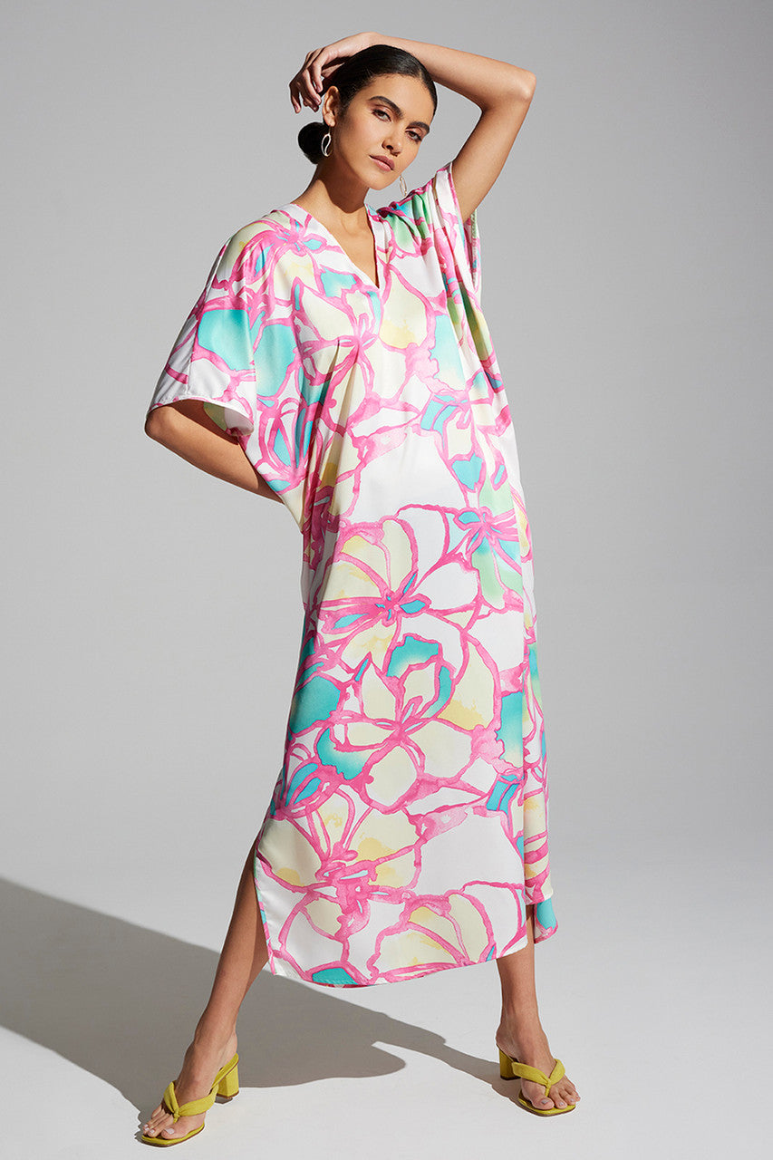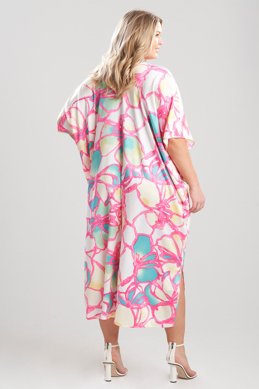 Soft, watercolor lilies stenciled on printed silky charmeuse.