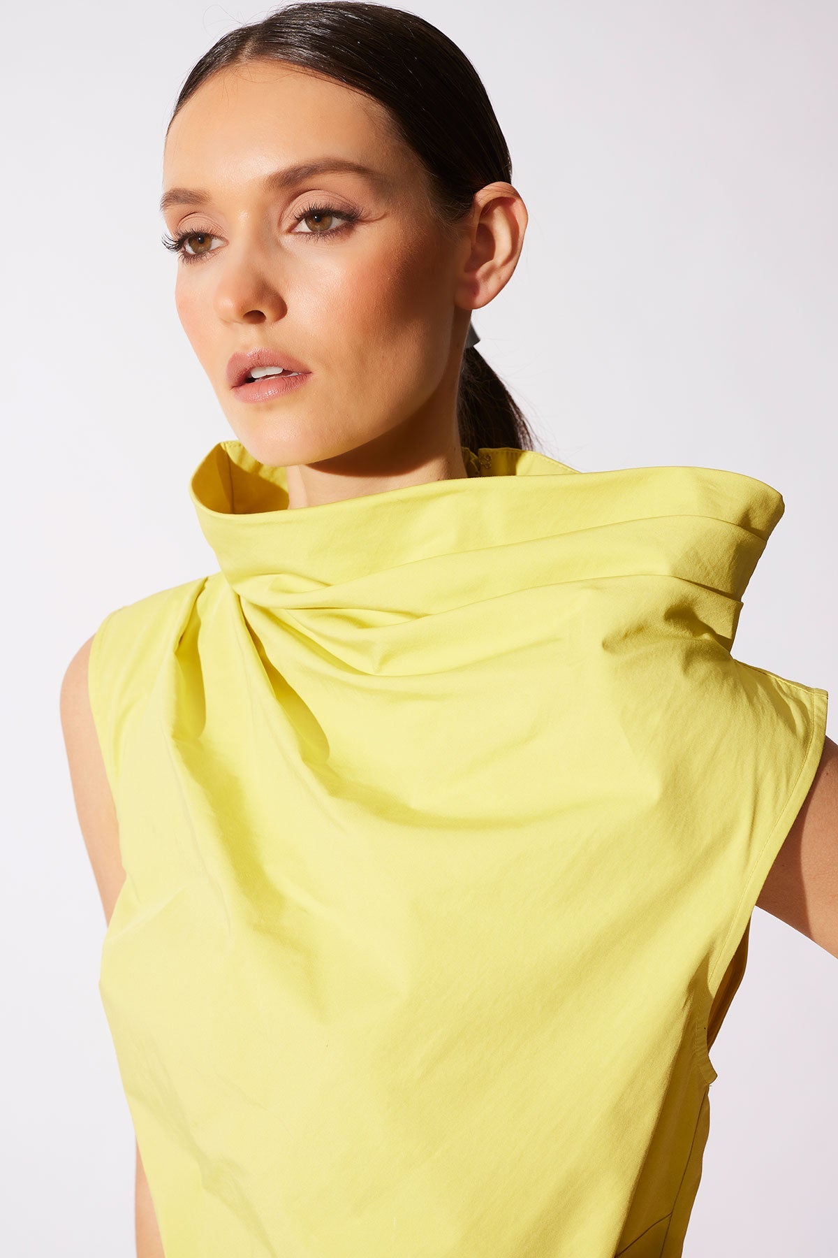 Tech Cotton Taffeta Asymmetric Funnel Neck Dress