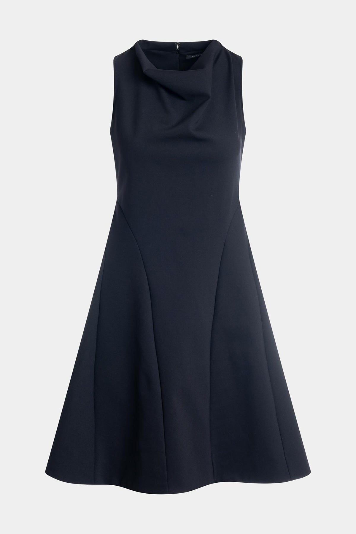 Techno Crepe Fit & Flare Funnel Neck Dress