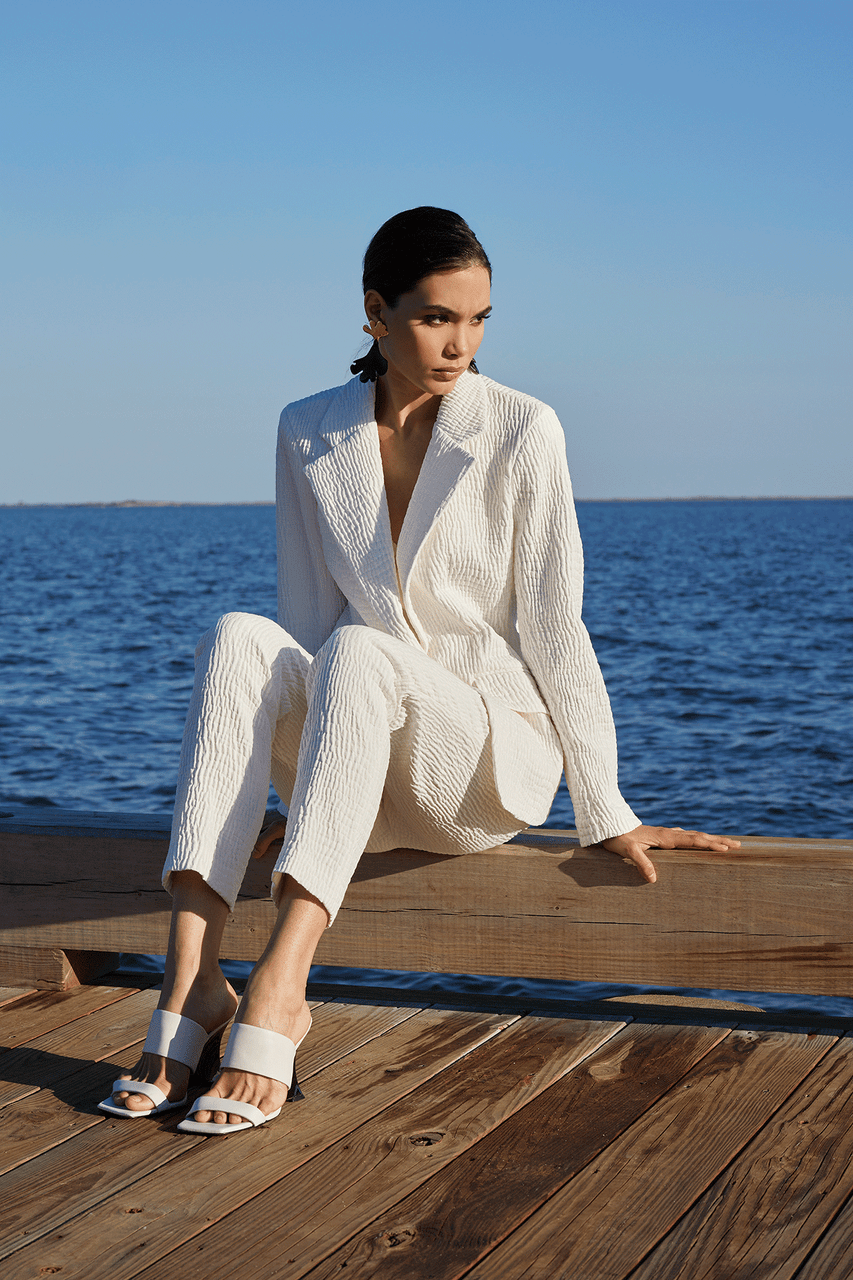 Pairs back to the matching textured cotton jacquard top and jacket.