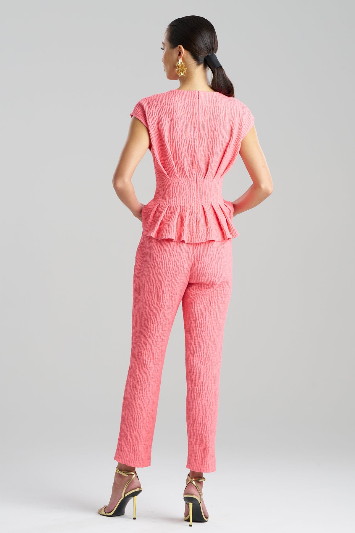 Textured Cotton Jacquard Cap Sleeve Peplum Top