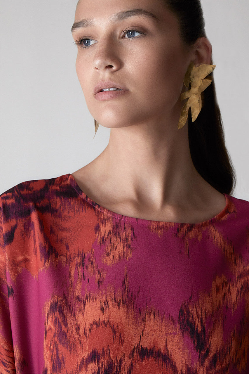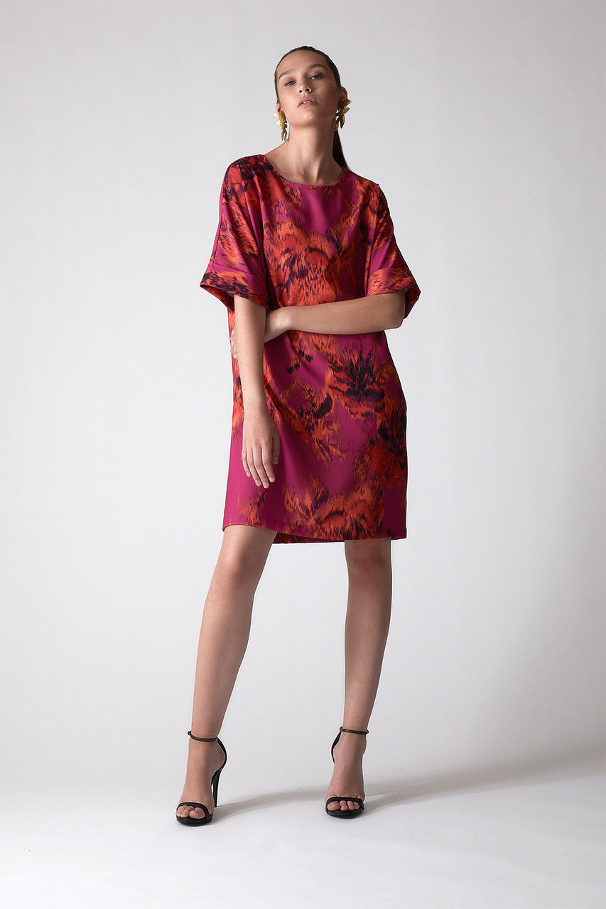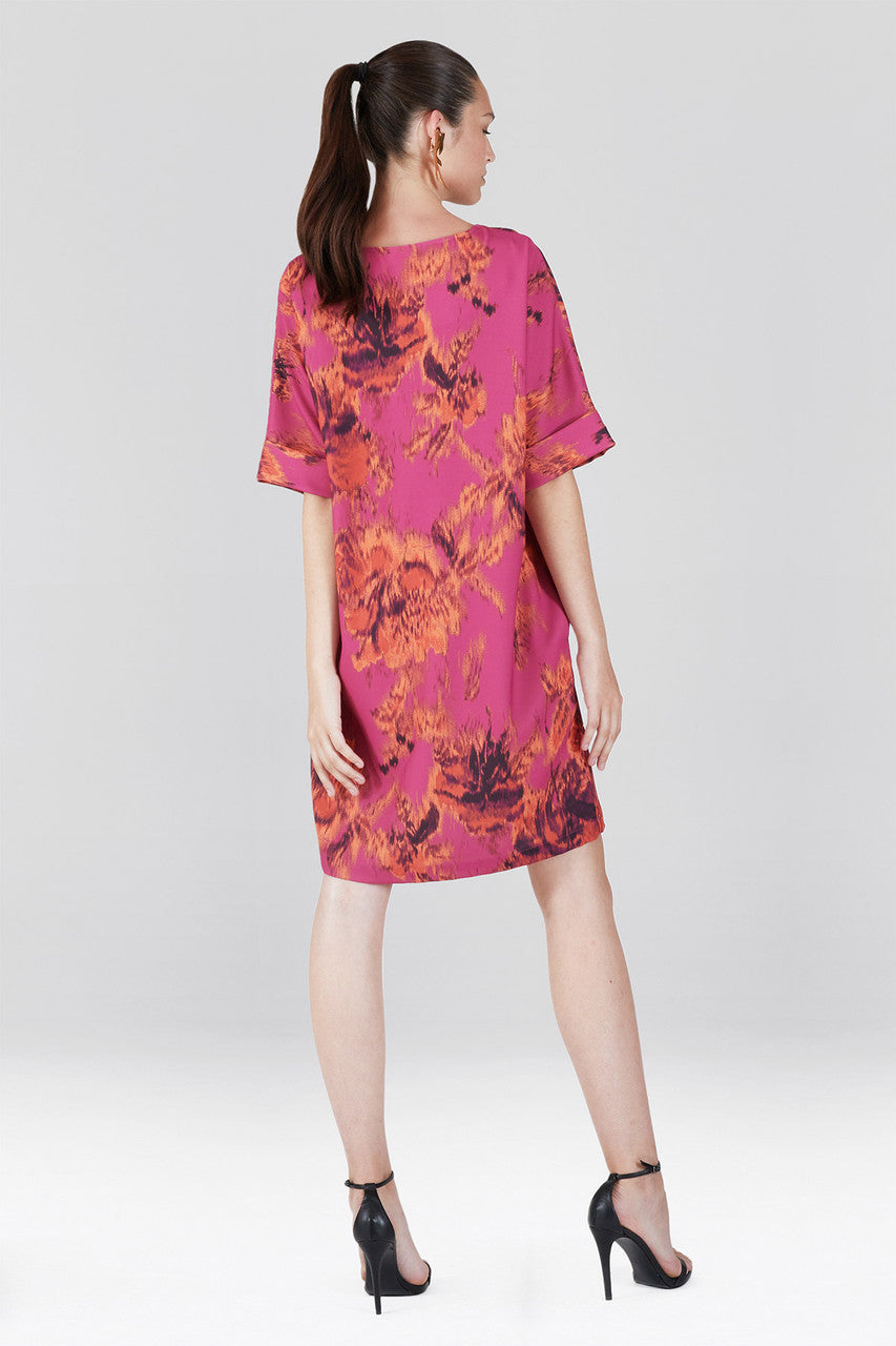 Tie-Dye Floral - Crepe T-Shirt Dress - guava