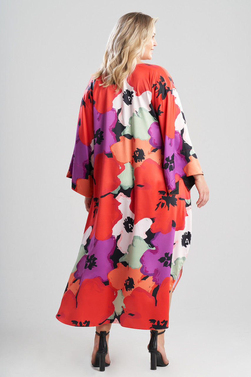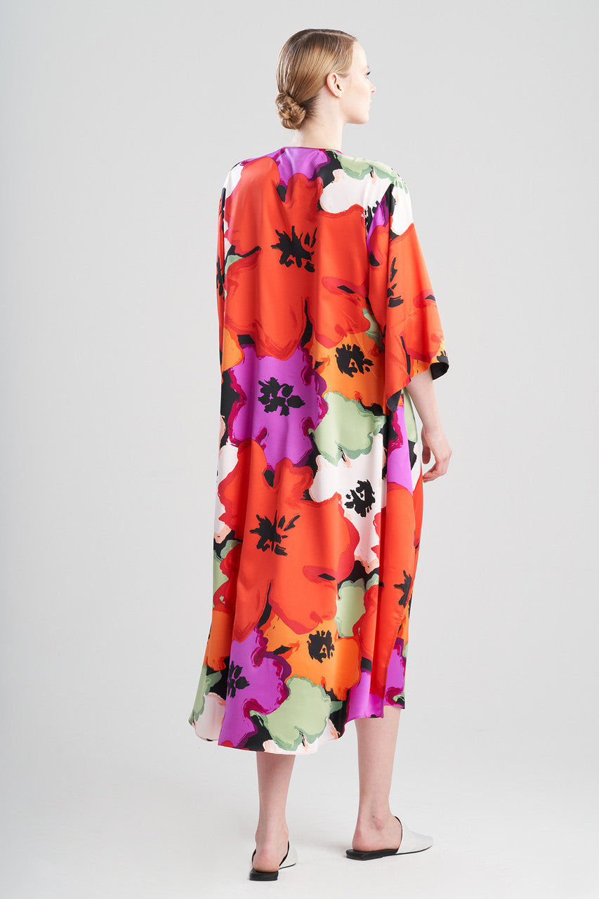 Bold blooms printed on silky charmeuse. Looks and feels like satin, washes like polyester.