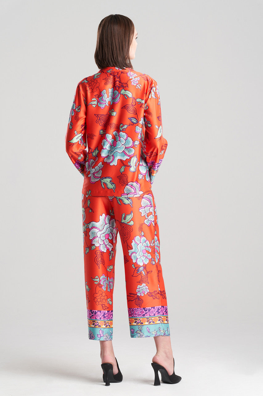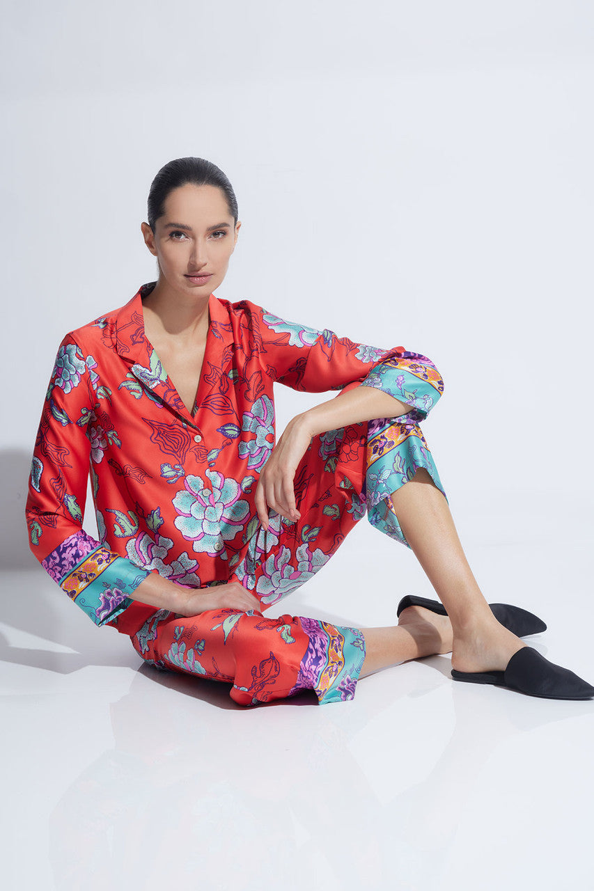 Feel artful and refined in Ume. Printed on our classic charmeuse fabric that is smooth to the touch with a classic shiny finish. Known for its lustrous sheen and flowy drape.