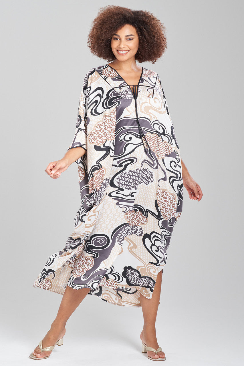- Relaxed and flowy windowpane caftan
