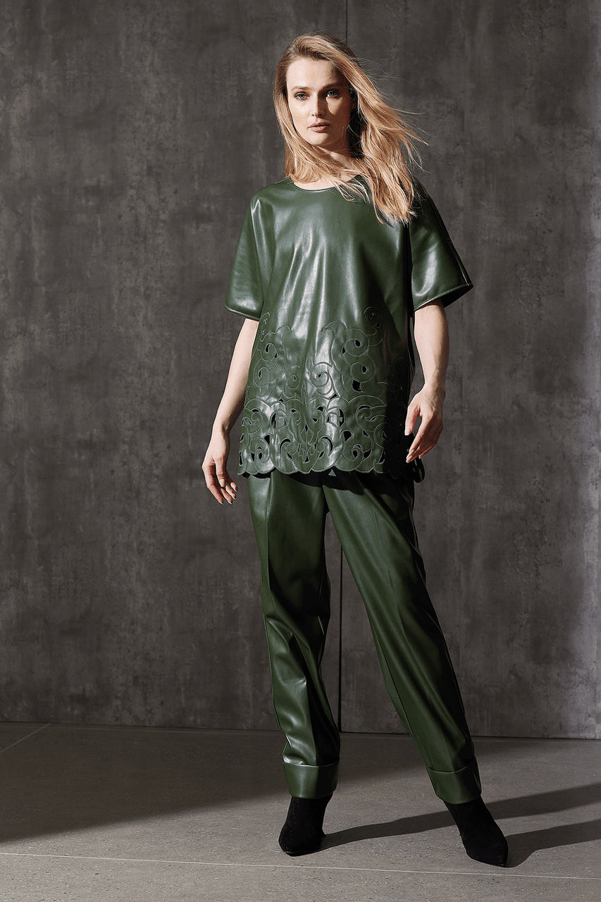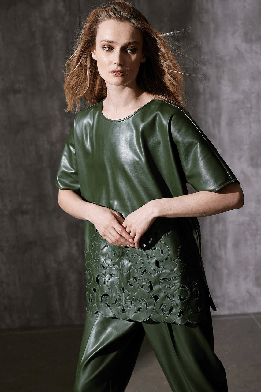 Vegan Luxe Lambskin Embroidered T-Shirt Tunic