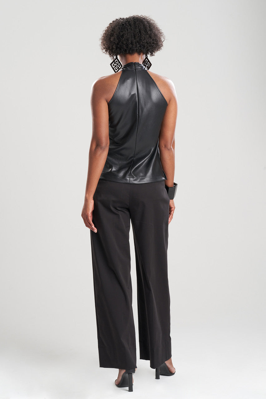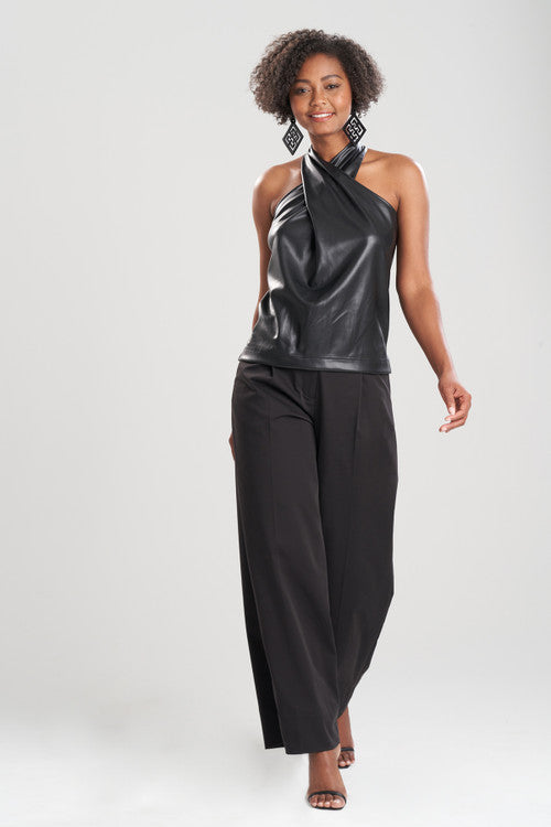 Vegan Luxe Leather Crossover Halter Tank - Black