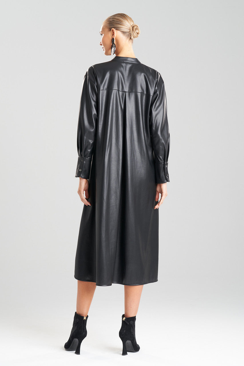 Vegan Luxe Leather Oversized Half Placket Shirtdress - Black
