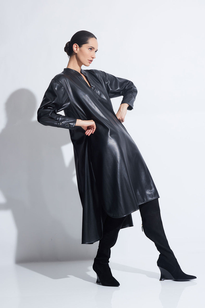 • Our oversized shirtdress with a half placket in our 100% vegan leather