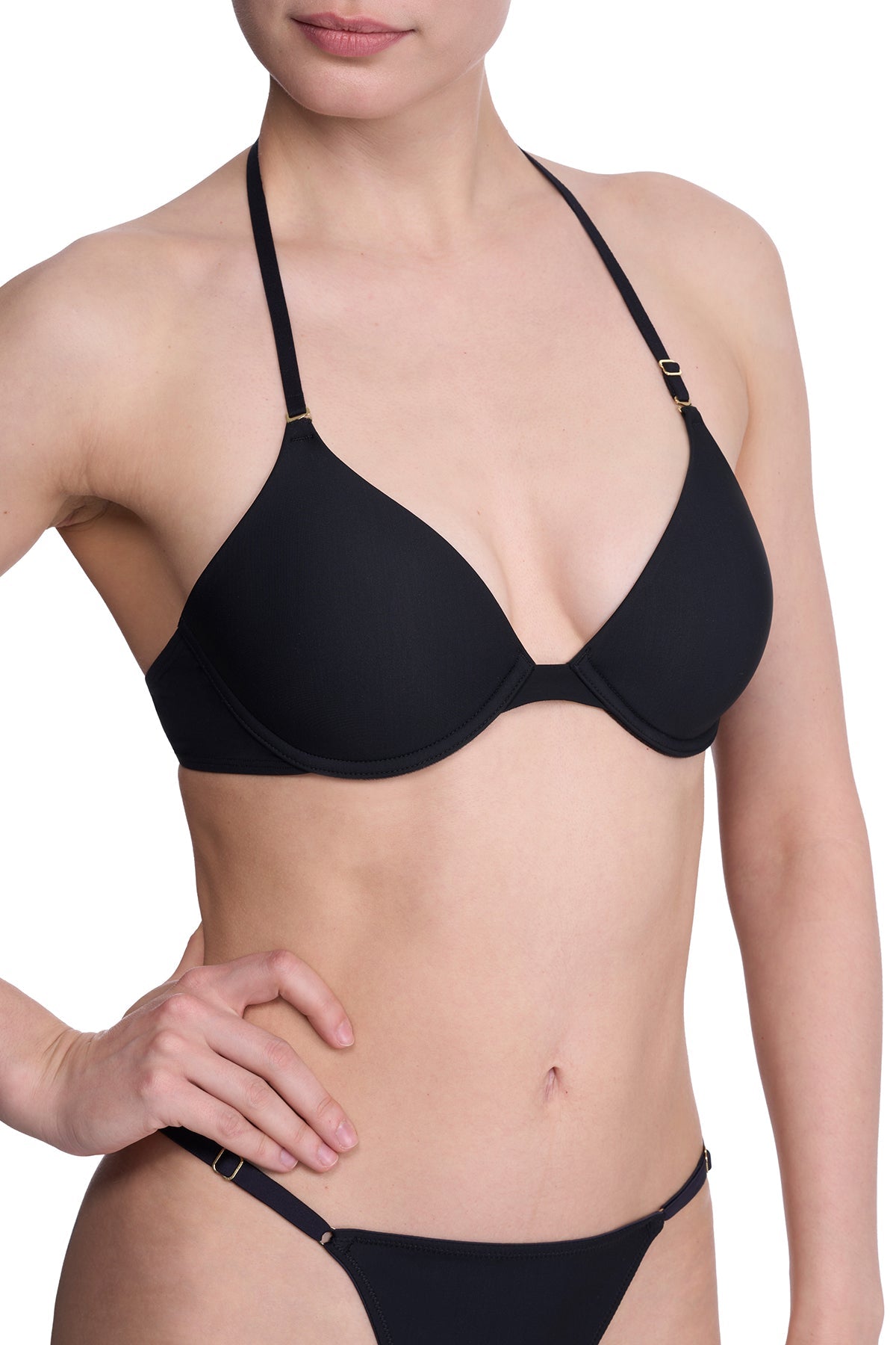 - Multi-way straps are fully adjustable and finished with signature Natori gold hardware