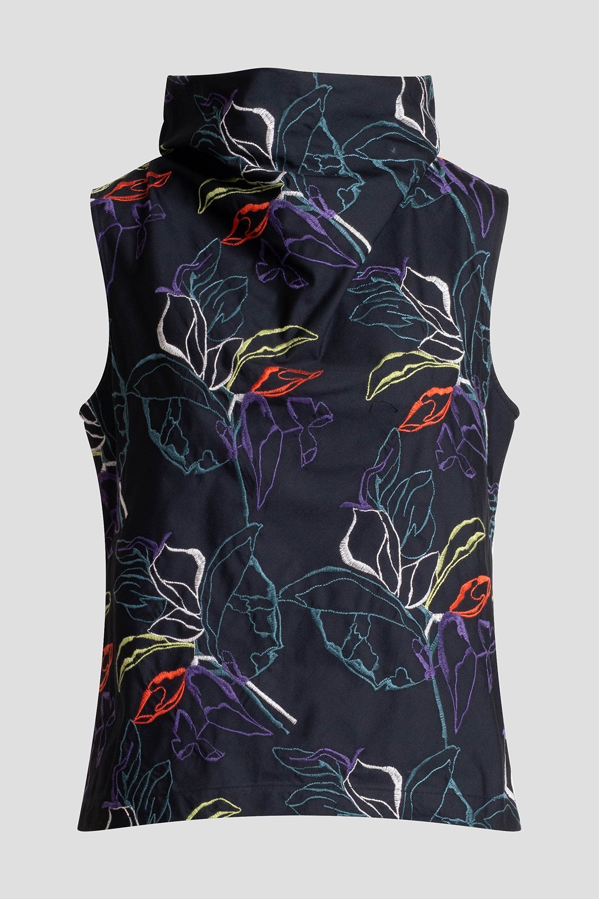 Yoru Embroidered Cotton Poplin Funnel Neck Top