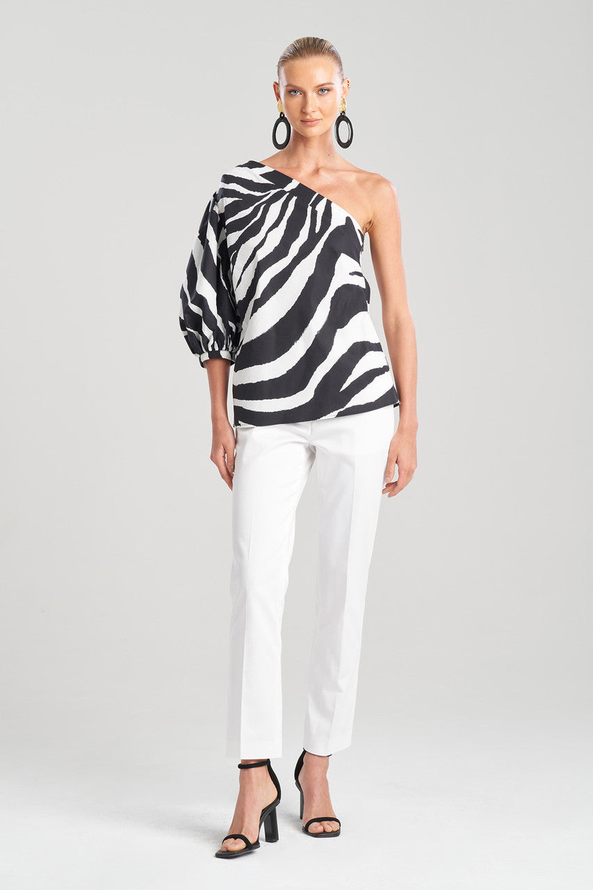 Zebra Cotton Poplin Balloon One Shoulder Top - black/white